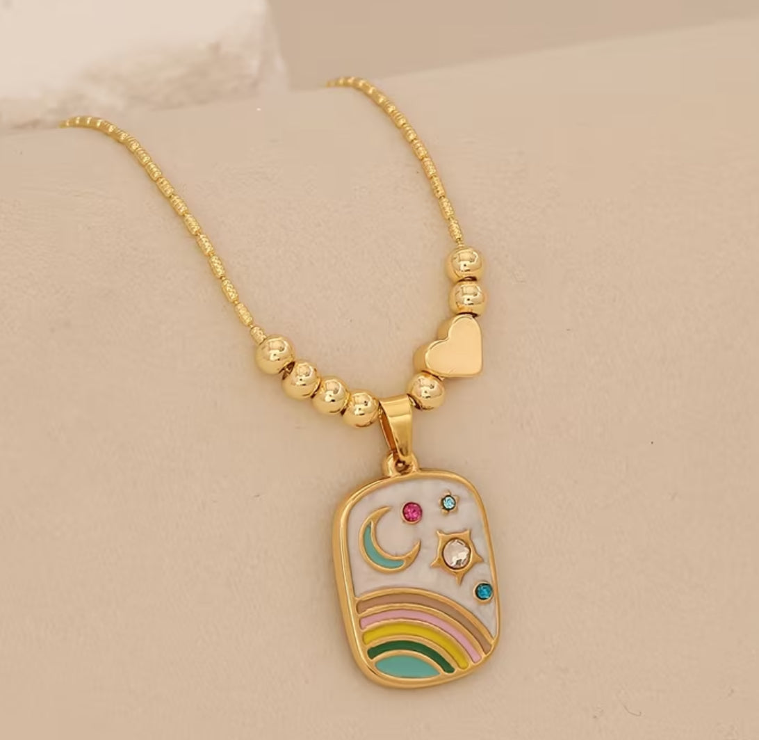 Stainless Steel Necklace with Crescent Design🌙 and Star🌟