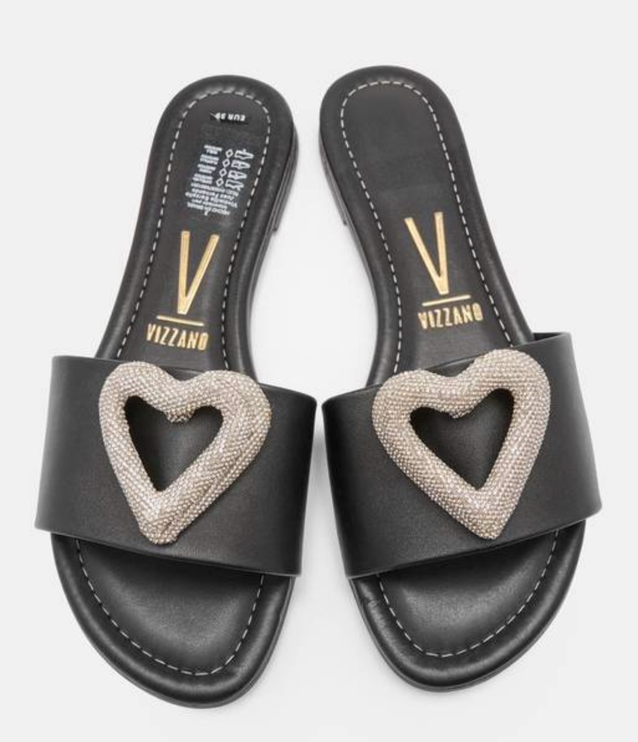 VIZZANO flat black sandals with decorative silver heart🖤